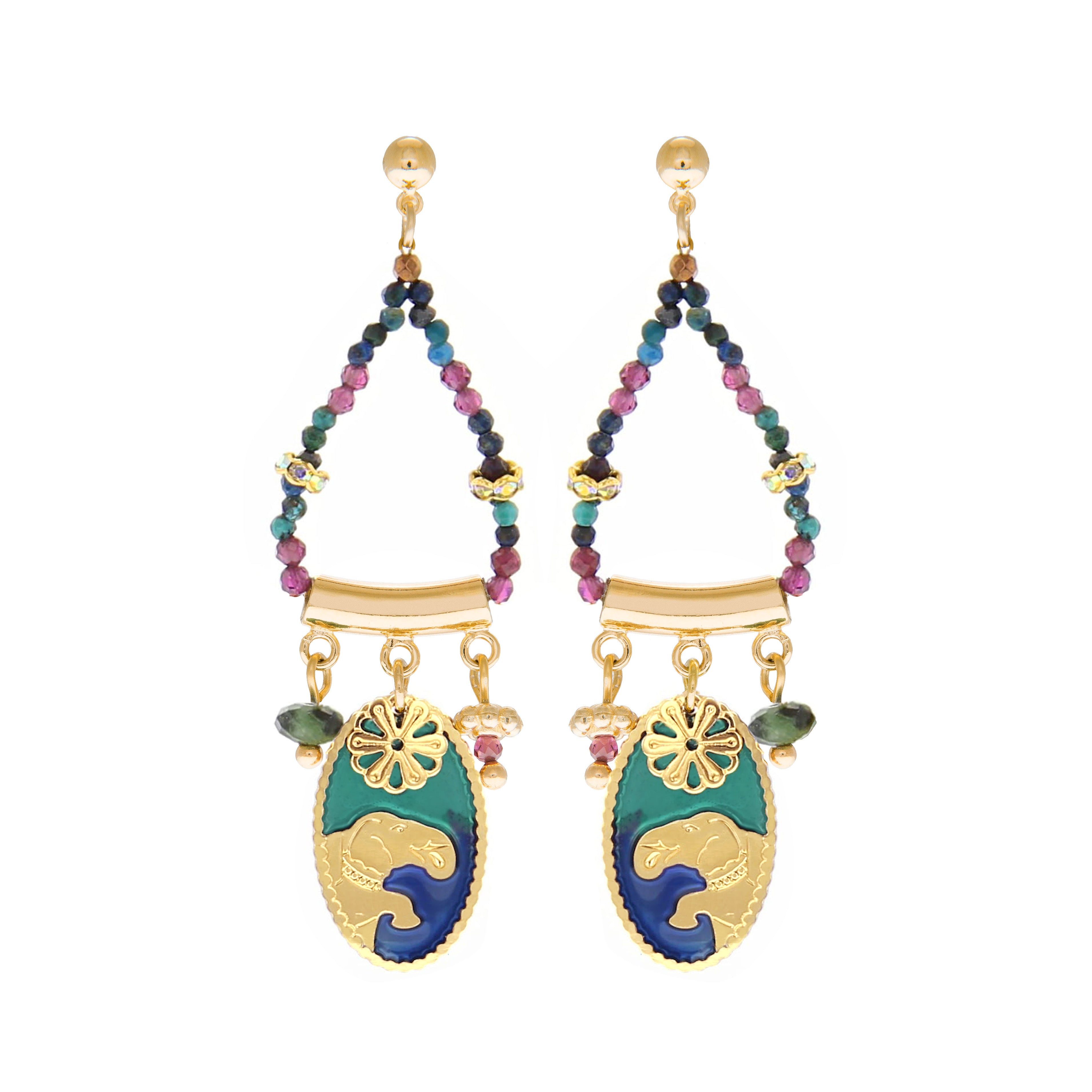 Éléphants porte-bonheur, symboles végétaux, pierres chatoyantes s’entremèlent dans cette collection afin de vous partager au mieux mes émotions durant ce voyage.