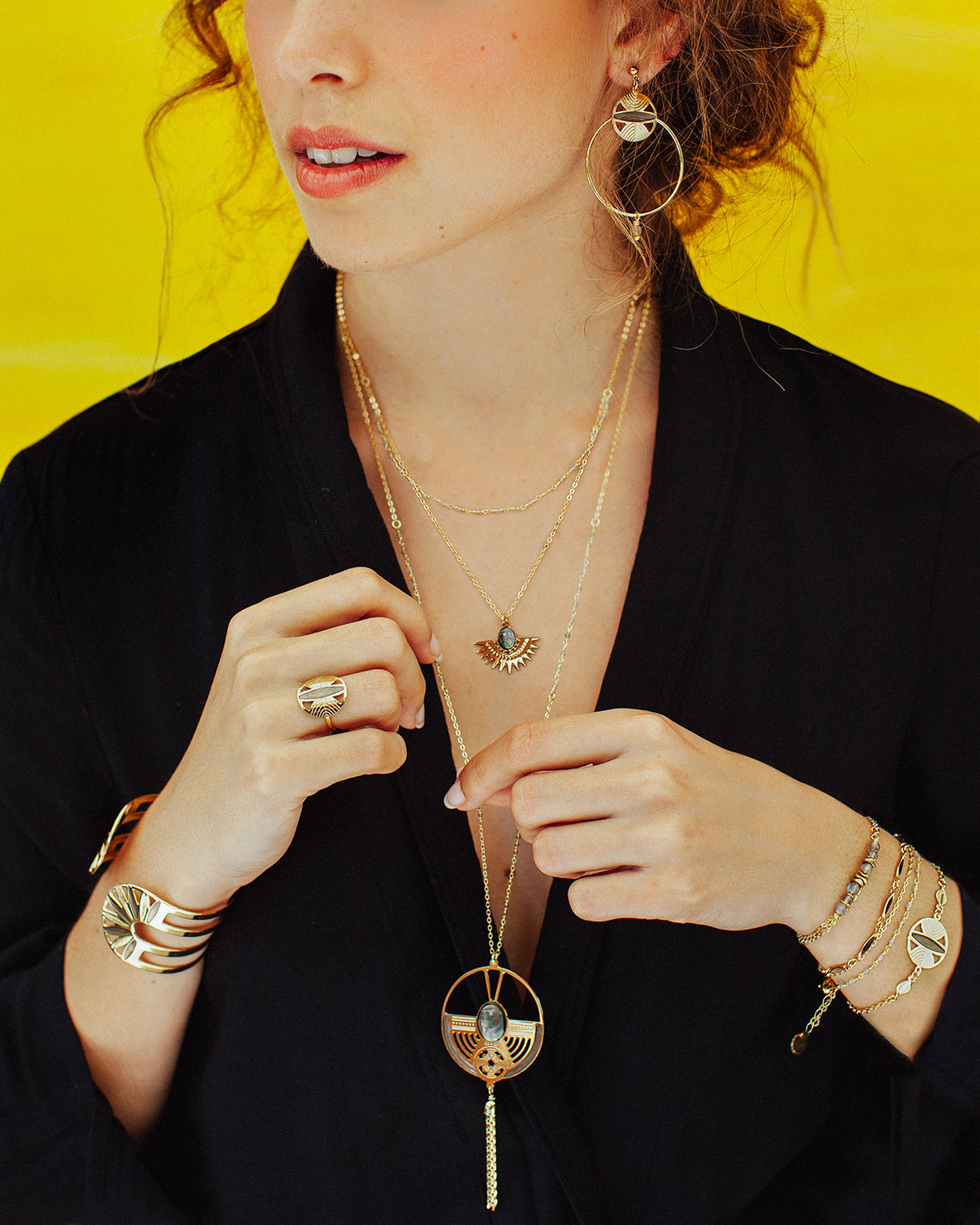 D’une exploration sur les Terres précolombiennes est née la collection Inca. Ces bijoux sont inspirés d’architectures concentriques de cette civilisation fascinée par le Soleil. Ils sont rehaussés de pierres naturelles et semi-précieuses pour rappeler l’attachement qu’ont les Incas à ce qu’offre la Nature.