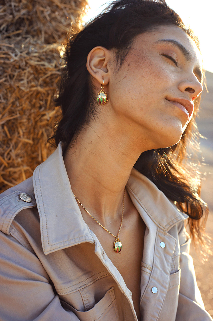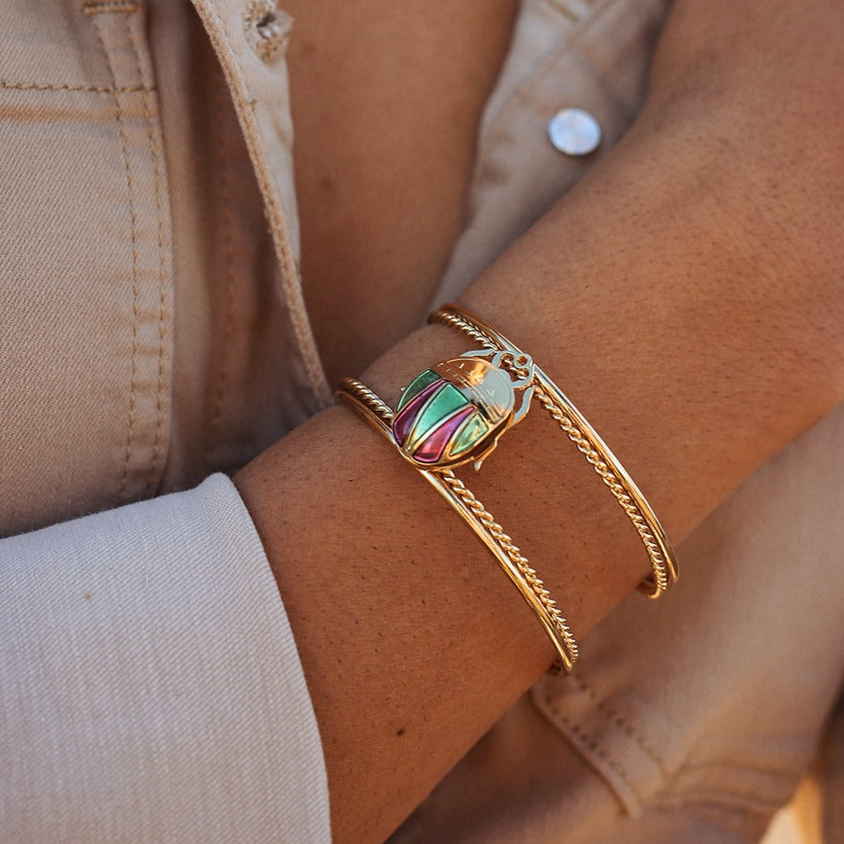 Plongeant au coeur de l'Egypte antique et de la séduction infinie de ses hiéroglyphes, ses reines de beauté d'or, ses mythes et légendes, je me suis inspirée des plus emblématiques motifs pour l'assemblage de la collection Isis.